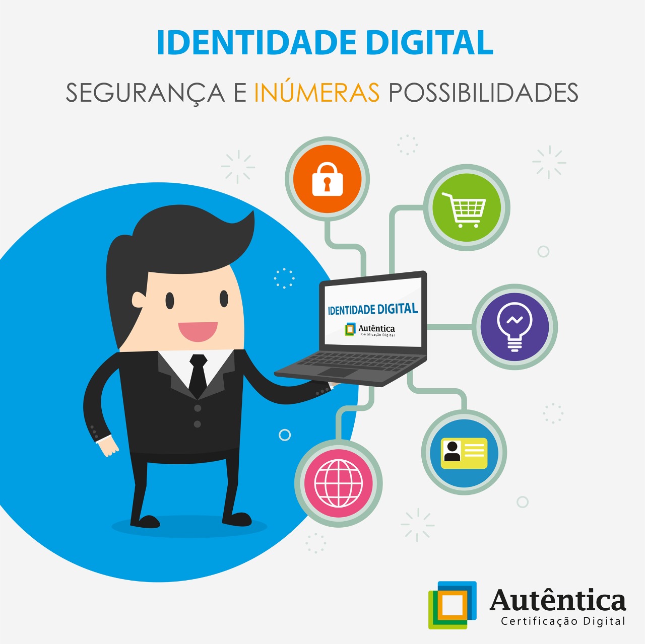 Certificado Digital Pessoa Física A3 tem validade de 12 a 36 meses. Fica armazenado em um token ou cartão. Pode ser utilizado para identificação digital e assinatura de documentos com validade legal de forma rápida e segura.